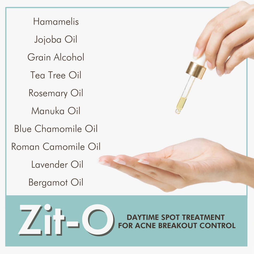 While our skin does most of its healing at night, sometimes it needs a little extra help during the day. Zit-O Day Treatment is a specialty blend of essential oils meant to be worn as a spot treatment under your everyday moisturizer. A little will go a long a way as it fights infections, stimulates lymph flow and blood circulation, reduces sebum production, and purges toxic substances deposited in the pores.